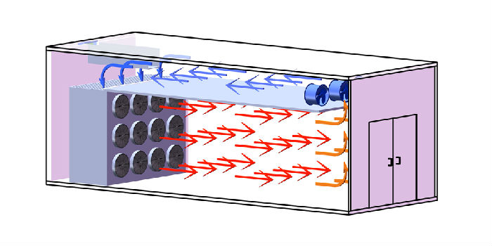 3,機組有上出風、下出風兩種結(jié)構,配套的烘房形式多為:正(zhèng)壓吹風,負壓回風。